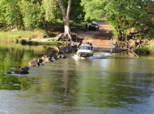 Erfrischt ging es weiter zum East Aligator River, hier kann man beobachten, wie sich Salzwasserkrokodile die Fische von der Flut direkt in den Mund strömen lassen. Leider waren wir zur falschen Jahreszeit da. Wir befanden uns an dieser Stelle auch an der Parkgrenze, die für Besucher geöffnet ist. Es angelten ein paar Touristen am Ufer mit chicen teuren Angeln. Eine Strasse führte durch den Fluss, das Wasser überflutet sie, wenn Flut ist. Für Fahrzeuge mit Vierradantrieb sollte das jedoch kein Hindernis sein.