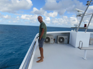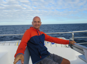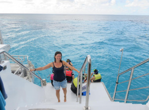 Morgens ging es pünktlich um 7:00 Uhr mit einem luxuriösen Katamaran los. Die Lady Musgrave Island ist eine 0,275 km² große, unbewohnte Koralleninsel, sie liegt an der Ostküste und bildet das südliche Ende des Great Barrier Reefs. Zunächst wurden wir aber 2 Stunden durchgeschaukelt. Wir hatten eine Tablette gegen Reiseübelkeit genommen und konnten die Fahrt und ein kleines Frühstücksbuffet genießen.