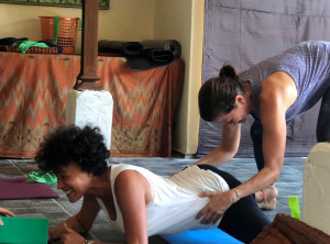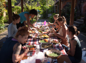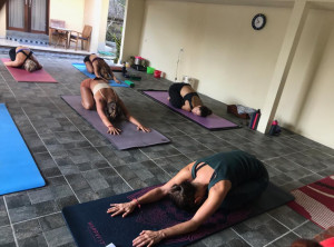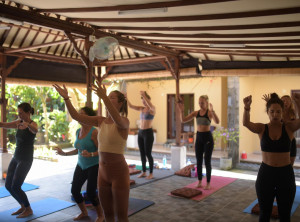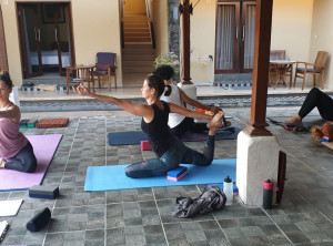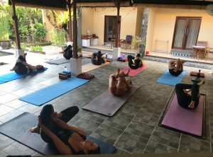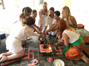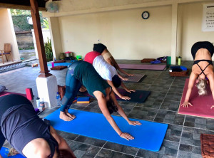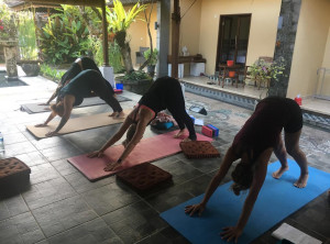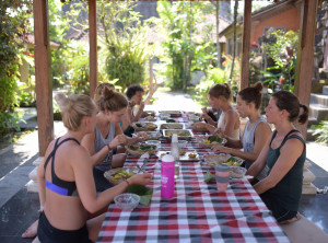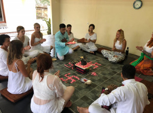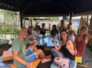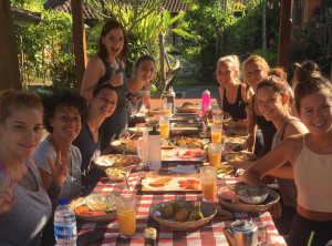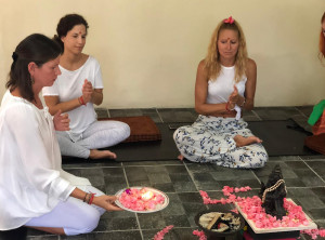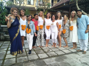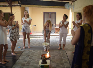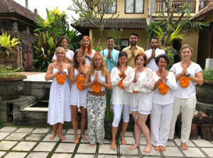 Ich bezog Ende Mai mein Zimmer in Ubud lernte beim Abendessen die anderen Teilnehmer und Lehrer kennen. Am nächsten Tag ging es los mit einer schönen Willkommenszeremonie, Drei von unseren Lehrern stammen aus Indien, genauer aus Risikesch, diesen Ort hatten Markus und ich am Anfang unserer Reise besucht und eine aus den Staaten. Unsere Gruppe bestand aus 8 Mädels, vertreten waren Frankreich, Dänemark, Neuseeland, Niederlande, Schweiz, Kanada und Frankreich – also ein bunter Haufen. Besser hätte ich es kaum treffen können.