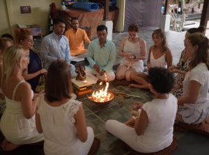 Ich bezog Ende Mai mein Zimmer in Ubud lernte beim Abendessen die anderen Teilnehmer und Lehrer kennen. Am nächsten Tag ging es los mit einer schönen Willkommenszeremonie, Drei von unseren Lehrern stammen aus Indien, genauer aus Risikesch, diesen Ort hatten Markus und ich am Anfang unserer Reise besucht und eine aus den Staaten. Unsere Gruppe bestand aus 8 Mädels, vertreten waren Frankreich, Dänemark, Neuseeland, Niederlande, Schweiz, Kanada und Frankreich – also ein bunter Haufen. Besser hätte ich es kaum treffen können.