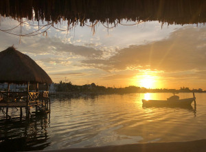Die ersten Tage in México liegen hinter mir. Der Start hier mit Markus und Nikola war wunderbar. Ich wurde am Flughafen von Cancun sehr herzlich empfangen und wir verlebten erste entspannte Tage auf der Insel Holbox. Nun sind wir auf dem Weg nach Rio Lagartos zu den Flamingos. Die Straßen in México sind erstaunlich gut und wir kommen schnell voran. Dank Nikolas und Markus Fahrkünsten kann ich zwischendurch auf der Rückbank ein Nickerchen halten. Manchmal geht der Scheibenwischer statt der Blinker. Die zwei sind noch den australischen Linksverkehr gewohnt. Als wir Rio Lagartos erreichen, wollen uns die ersten Guides Flamingotouren per Boot verkaufen. Aber wir wissen es besser: mit dem Auto kann man auf eigene Faust losziehen. Warum heißt der Ort Rio Lagartos? Als die Spanier die Gegend entdeckten, dachten sie, er liegt am Fluss (Rio) und nicht an einer Lagune. Lagartos wegen der Alligatoren, die man hier durchaus antreffen kann. Nachdem wir uns im Hotel ausgeruht haben, ging es zum Abendessen in ein tolles Fischrestaurant an der Lagune. Ein Traum inklusive Sonnenuntergang.