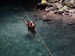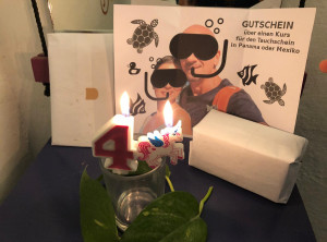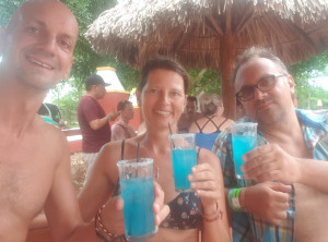Am Ziel angekommen schlürften wir einen blauen Cocktail und sprangen ins nächste kühle Nass. Hier konnte man mit einem Seil wie Tarzan ins Wasser springen, das war cool! Am Abend rundete ein köstliches Geburtstagsessen den schönen Tag ab.