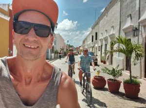 Kurzum es sind Wasserlöcher mit kühlem Süßwasser, in denen gebadet werden darf und genau das wollten wir bei fast 40 Grad. Es war mein Geburtstag und mir wurde quasi jeder Wunsch von den Augen abgelesen. Nach einem tollen Frühstück und noch tolleren Geschenken starteten wir mit dem Rad raus aus der Stadt zur ersten Cenote. Das kühle Bad konnten wir nach dem 8 km durch die warme Vormittagsluft gut gebrauchen.