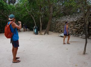 Auf dem Rückweg erwartete uns noch unser erstes Tulum Highlight, hier befindet sich die einzige Maya Fundstätte, die direkt am Meer liegt. Die inneren Gemäuer der historischen Stadt werden von einer zum Meer hin offenen Stadtmauer umrundet, an deren Nordwest- und Südwestecken Wachtürme stehen. Aus denkmalpflegerischen Gründen sind für Besucher nicht mehr alle Strukturen zugänglich. Dieser Ort wurde von den Mayas zur Beobachtung des Sternenhimmels gebaut. Der Maya Kalender wurde an solchen Plätzen wie diesem erstellt und geprüft.