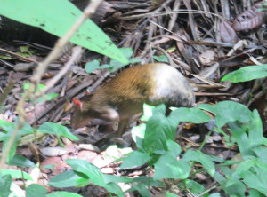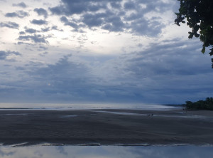 Uns wurde nicht zu viel versprochen. Es ist wirklich unglaublich, wie viele Tiere hier leben. Angeblich ist es eins der Gebiete auf der Erde mit der höchsten Dichte und Vielfalt an Tieren überhaupt. Wir sahen mehrere unterschiedliche Arten von Affen in den Bäumen oder direkt vor uns auf dem Weg, eine kleine Schlange, mehrere Greifvögel, ein paar Geier, ein Reh und mehrere Agoutis, die aussehen, wie eine Mischung aus Ratte und Minischwein. Wir konnten sogar noch ein zweites Faultier bei seiner Inaktivität beobachten. Dieses sogar kurz durch ein Standfernglas, das ein US-Amerikaner aufgebaut hatte. Und das alles auf nur ein paar Kilometern Weg in 3 Stunden. Am Ende genehmigten wir uns noch ein Bad im Pazifik an einem der schönen Strände des Nationalparks, bevor es mittags mit dem Bus zurück in unsere Unterkunft ging. Wir duschten noch fix, bevor wir mit Sack und Pack zum Busbahnhof gingen. Heute sollte es noch über die Grenze nach Panama gehen. Der Himmel war mittlerweile auch nicht mehr blau, es zogen sehr dunkle Wolken auf.