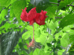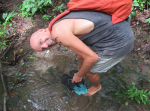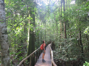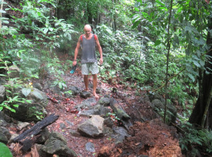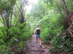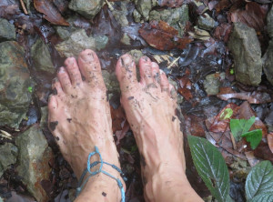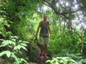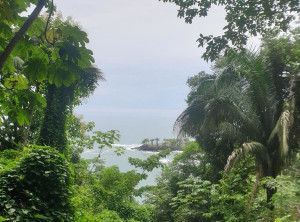 Am nächsten Morgen prasselte der Regen laut auf das Dach unserer Herberge. Also starteten wir erstmal mit einem ausgiebigen Frühstück in den Tag. Es war Montag und der Nationalpark sowieso geschlossen. Mittags hörte der Regen auf und wir wollten zu einem ca. 2 Kilometer entfernten Strand spazieren. Der Weg dorthin wurde immer schlechter und rutschiger, unsere Flipflops waren eindeutig nicht die richtige Schuhwahl. Nach einiger Zeit entdeckten wir tief unterhalb von uns und den Klippen, auf denen wir standen, den kleinen Strand, für uns ohne feste Schuhe nicht zu erreichen. Da der Weg zurück in die Stadt genauso weit gewesen wäre wie einfach weiter zu gehen, entschieden wir uns für letzteres. Unsere Flipflops waren mittlerweile so rutschig, dass wir uns barfuß sicherer fühlten. Es ging noch fast einen Kilometer an einer schönen Steilküste sehr rutschig mehrmals im Wechsel steil hoch und runter, bevor wir wieder „festen“ Boden unter den Füßen hatten. Komplett durchgeschwitzt konnten wir endlich durchatmen. Soviel zu unserem entspannten Badetag…