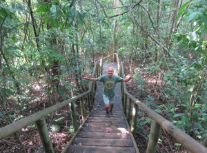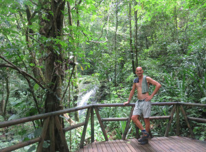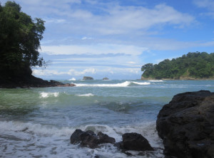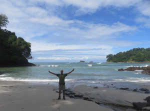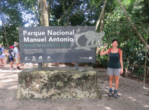Ein Pärchen aus San Jose, welches uns in La Fortuna per Anhalter mitgenommen hatte, empfahl uns in den Nationalpark Manuel Antonio zu fahren. Dort sieht man sehr viele freilebende Tiere im Regenwald. Nichts wie hin! Wir suchten uns eine kleine nette Pension im Küstenstädtchen Quepos, von hier aus ist der Nationalpark gut mit dem Bus zu erreichen.