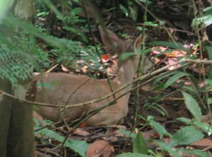 Am nächsten Morgen prasselte der Regen laut auf das Dach unserer Herberge. Also starteten wir erstmal mit einem ausgiebigen Frühstück in den Tag. Es war Montag und der Nationalpark sowieso geschlossen. Mittags hörte der Regen auf und wir wollten zu einem ca. 2 Kilometer entfernten Strand spazieren. Der Weg dorthin wurde immer schlechter und rutschiger, unsere Flipflops waren eindeutig nicht die richtige Schuhwahl. Nach einiger Zeit entdeckten wir tief unterhalb von uns und den Klippen, auf denen wir standen, den kleinen Strand, für uns ohne feste Schuhe nicht zu erreichen. Da der Weg zurück in die Stadt genauso weit gewesen wäre wie einfach weiter zu gehen, entschieden wir uns für letzteres. Unsere Flipflops waren mittlerweile so rutschig, dass wir uns barfuß sicherer fühlten. Es ging noch fast einen Kilometer an einer schönen Steilküste sehr rutschig mehrmals im Wechsel steil hoch und runter, bevor wir wieder „festen“ Boden unter den Füßen hatten. Komplett durchgeschwitzt konnten wir endlich durchatmen. Soviel zu unserem entspannten Badetag…