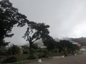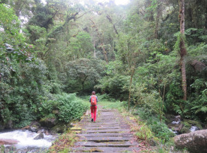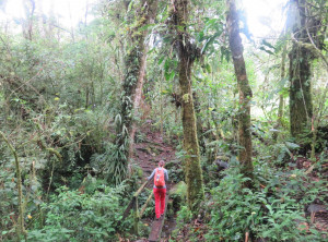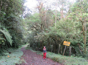 Es gab Alternativen, wir nutzten die Zeit für zwei schöne Wanderungen. Am ersten Tag ging es auf den Sendero los Quetzales. Dieser 14 km lange Wanderweg gilt als einer der schönsten in Panama. Es ging durch einen dichten Regenwald erst auf und ab und schließlich nur noch hoch. Nach ein paar Kilometern erreichten wir einen Aussichtspunkt. Die Aussicht war leider etwas eintönig oder auch grau in grau. Es sah aus, als ob sich etwas zusammenbraut. Wir gingen weiter. Nach ein paar hundert Metern fing es dann an zu regnen, erst etwas und dann etwas mehr und schließlich so richtig. Wir entschieden uns, also doch besser umzukehren. Leider sollte es an diesem Tag wohl nicht mehr aufhören zu regnen. Es war glücklicherweise schön warm dabei. Wir spazierten den ganzen Weg zurück – etwa 2,5 Stunden durch den Regen. Irgendwann lief das Wasser an unseren Beinen runter bis in die Schuhe.