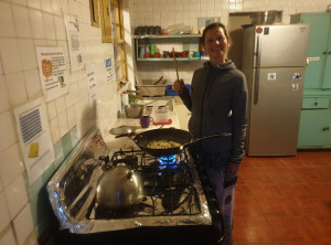 In unserem Hostel gab es Frühstück für alle – eine große Schüssel Pfannkuchenteig stand zur Verfügung und jeder konnte sich seine Pfannkuchen nach Gusto zubereiten. Dazu gab es Sirup und frischen Kaffee. Wir verfeinerten noch mit Obst und schlugen uns den Bauch voll. Am Morgen unserer Abreise sättigten wir uns nochmals mit Pfannkuchen und stiegen voll beladen in den Bus zurück nach David. Das Schwarzbrot, welches wir für unsere Nachtwanderung vorgesehen war, diente uns nun als Proviant für den Tag.