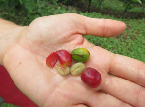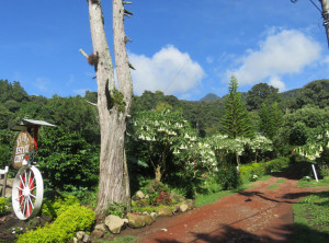 Am zweiten Wandertag wollten wir es nochmals versuchen, wir starteten (kaum zu glauben) bei blauem Himmel mit trockenen Klamotten. Es ging durch blühende Felder und durch ein Wäldchen zu einem unspektakulären Wasserfall über Kaffeeplantagen und zurück zum Hotel. Regnen sollte es erst später ?