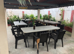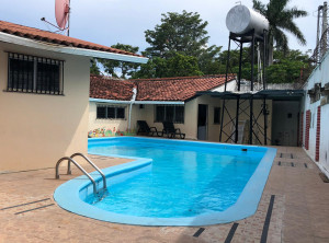 Zunächst fuhren wir von Boquete zurück nach David und stiegen dort in einen bequemen Bus Richtung Panama Stadt um. Da der Weg bis zu unserem Ziel Farallón noch weit war und wir noch einen Tag Zeit hatten, beschlossen wir, einen Zwischenstopp einzulegen. Wir checkten in einem schönen Hostel in Antón ca. 50 Kilometer vor unserem Ziel ein. Der Besitzer kommt aus Italien und im Innenhof der Herberge fühlt es sich ein bisschen an wie in einem römischen Innenhof. Alles ist sehr schön dekoriert und gepflegt. Am nächsten Morgen machten wir noch eine kleine Laufrunde, bevor wir am späten Vormittag in das Sammeltaxi nach Farallon stiegen. Wir waren sehr gespannt, was uns dort erwartete!