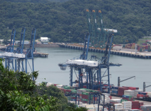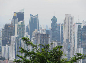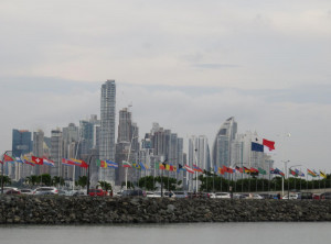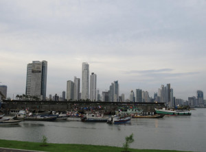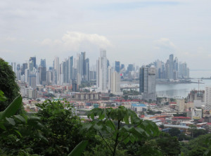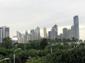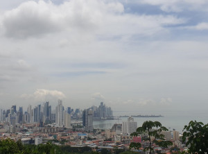 Wir fuhren also in Richtung Hauptstadt und direkt in ein heftiges Regengebiet. Wir hörten sehr laute Donnerschläge über uns krachen und zuckende Blitze waren in den dunklen Wolken zu beobachten. Viele Autos fuhren rechts ran, da die Straße von den Wassermassen schnell überflutet wurde. Zum Glück war der Spuk genauso schnell vorbei, wie er gekommen ist. Als unser Bus die Brücke über den Panama Kanal passierte, war der Himmel wieder freundlich. Wir hatten einen guten Blick auf ein riesiges Containerschiffe, welches gerade in den Kanal gelotst wurde. Und dann tauchte auch schon die Skyline der City vor unseren Augen auf. Wahnsinn mit so vielen Wolkenkratzern hatten wir nicht gerechnet.