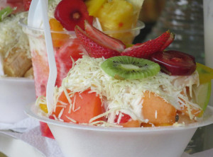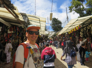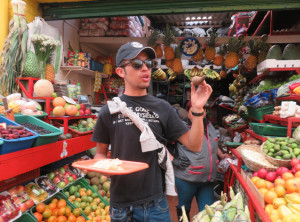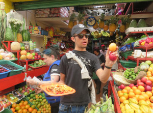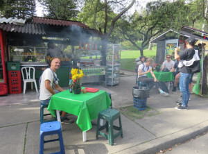 Wir probierten auf einem Markt verschiedene uns teilweise unbekannte Früchte. Besonders im Gedächtnis geblieben ist mir Yacón, eine Wurzel, die optisch eher an eine Süßkartoffel erinnert, aber innen sehr saftig und süß ist und roh verzehrt werden kann. Danach gingen wir durch eine Kneipe in einen Hinterhof und spielten Tejo. Bei dieser in Kolumbien sehr beliebten Freizeitbeschäftigung wirft man einen schweren Stein auf eine weit entfernte Zielscheibe. Auf ihr stecken kreisförmig einige Plättchen mit Schießpulver. Trifft man diese Plättchen, gibt es einen entsprechend lauten Knall und Punkte. In unserer Gruppe hatte ich das Glück, als einziger eine kleine aber laute Explosion auszulösen.