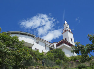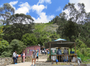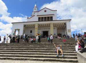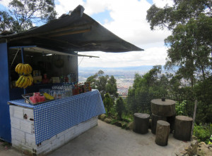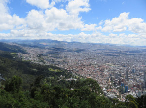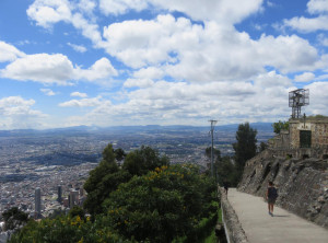 Für unseren letzten Tag hatten wir uns den Aufstieg auf den Hausberg Bogotás vorgenommen, den ca. 600 Meter über der Stadt liegenden Cerro de Monserrate. Wir liefen von unserer Unterkunft die 6 Kilometer zum Fuß des Berges und ließen sowohl die Seilbahn als auch die Zahnradbahn auf den Gipfel links liegen. Der Weg auf den Berg geht über Stufen und ist steil, aber viele andere taten es uns gleich. An jeder zweiten Ecke standen Polizisten und bewachten die Wanderer, denn in der Vergangenheit sind hier tatsächlich viele Personen ausgeraubt worden. An diesem Samstag war es aber sehr voll und wir fühlten uns daher absolut sicher. Während des steilen Aufstiegs wurde der Blick auf die weit unter uns liegende Stadt immer schöner. Wir hatten Glück mit dem Wetter und in der Sonne war es richtig warm. Oben auf dem Gipfel auf 3.200 Meter steht eine große Kirche. Hier herrschte richtiger Trubel und es gab viele Restaurants und Souvenirstände. Wir genossen die Aussicht, bevor wir wieder runter in die Stadt abstiegen. Unten angekommen genehmigten wir uns noch ein Bierchen, bevor wir den Bus zurück in unser Stadtviertel nahmen. Abends gingen wir früh schlafen, da es mitten in der Nacht mit dem Flugzeug weiter nach Peru ging. Wir bestellten uns ein Taxi, welches uns um 2:30 Uhr in der Nacht abholte und damit war unser Aufenthalt in Kolumbien leider nach ein paar Tagen schon wieder vorbei, aber wir werden bestimmt wiederkommen, um das Land richtig kennen zu lernen.