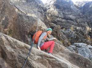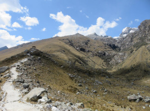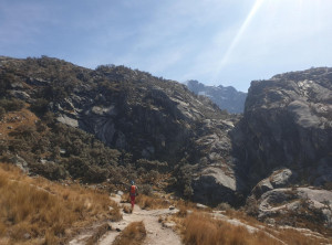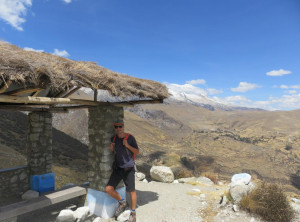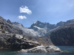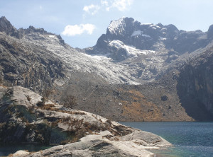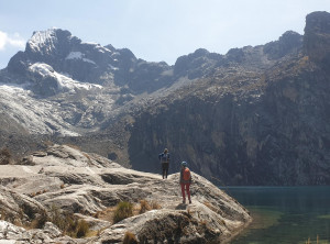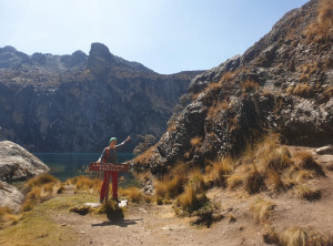 Am nächsten Morgen nahmen wir dann den Weg zum Bergsee auf uns. Der Weg war abgesehen von der Höhenlage zunächst nicht schwer, aber das änderte sich weiter oben und wir stiegen an Seilen Felsen hoch. Nach anstrengenden sieben Kilometern sahen wir die von schönen Berggipfeln umgebene Laguna Churup und wir legten eine Rast ein, bevor wir uns auf den Rückweg machten. Da wir früh gestartet waren, kamen wir schon vor 12 Uhr mittags wieder am Auto an und fuhren los Richtung Norden zur Laguna 69.