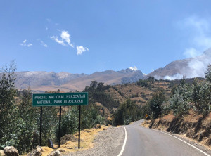 Wir fanden schließlich noch einen großen Supermarkt mit bewachtem Parkplatz und nachdem wir dann endlich unsere Vorräte einkaufen konnten, ging es auf der Panamerikana an der Küste durch eine karge und neblige Wüstenlandschaft Richtung Norden. Auf der Hälfte der Strecke kamen wir in eine weitere Polizeikontrolle. Wir setzten ein Pokerface auf, reichten die Papiere raus und konnten zum Glück sofort weiterfahren. Danach schraubte sich die Straße über viele Kilometer durch ein grünes Tal inmitten einer Steinwüste bis auf 4.200 Meter die Anden hinauf. Die letzten 100 Kilometer nach Huaraz mussten wir im Dunkeln fahren und wir kamen erschöpft im Hostel an. Dieses lag am Stadtrand, Doppelzimmer mit Bad für 9 €, wir konnten direkt vor der Tür parken und hatten sogar ein kleines Frühstück inklusive.