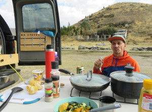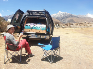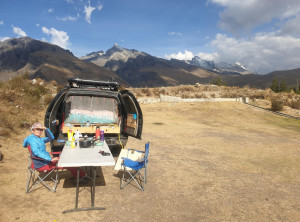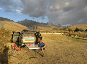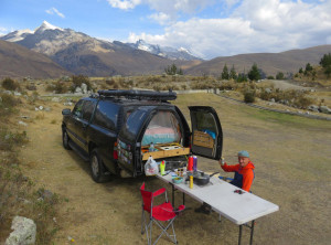 Am nächsten Morgen sahen wir zum ersten Mal in Peru strahlend blauen Himmel. Wir machten uns auf in die Stadt und ließen das Zoll Dokument ausdrucken und die Versicherung für Jeffrey ändern. Somit waren wir für die nächste Polizeikontrolle gerüstet Danach fuhren wir zur Laguna Churup. Es ging eine zum Glück durchgängig asphaltierte Straße bis auf fast 4.000 Meter hinauf. Da es mittags war und wir uns erstmal an die Höhe gewöhnen wollten, gingen wir nur ein kleines Stück den Berg hoch und machten es uns am Nachmittag am Auto gemütlich, kochten zur ersten Mal in unserer Outdoorküche und genossen die Stille hier oben.