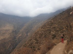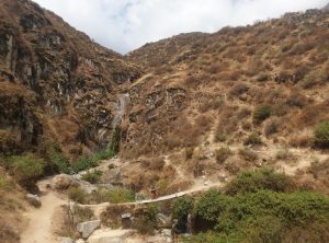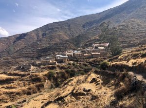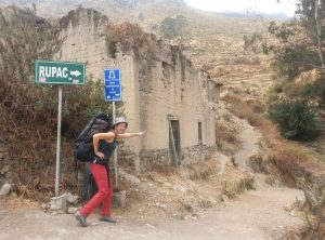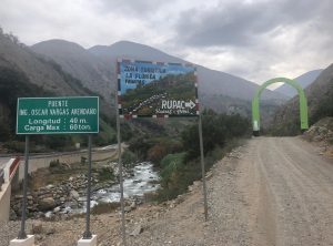 Nach zwei Nächten im Nebelpark machten wir uns auf den Weg nach Rupac – das ist eine verlassene Stadt und ein beliebtes Wochenendziel der Menschen aus Lima. Es war Montag und wir hofften darauf, dem Trubel zu entkommen. Wir hatten nur 100 km Wegstrecke dafür aber 3.000 Höhenmeter vor uns. Die ersten 75 km waren einfach. Wir passierten die Stadt Huaral und fuhren bei blauem Himmel den Bergen entgegen. Die letzten 25 km fuhren wir auf einer Schotterpiste und die Straße schraubte sich Kurve für Kurve bergauf. Der Weg war wirklich schmal und wir waren froh, keinen Gegenverkehr zu haben. Einige Kurven schafften wir erst im zweiten Anlauf und so holperten wir eine gute Stunde über die schlechte Piste zum Ziel.