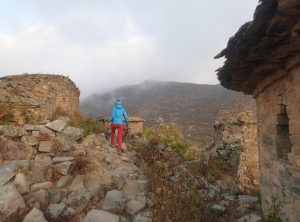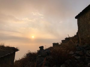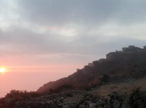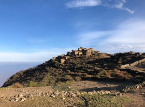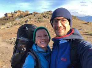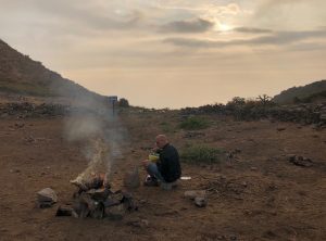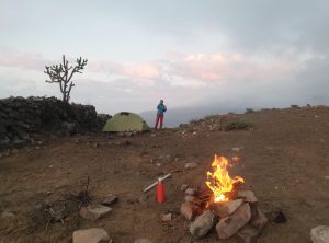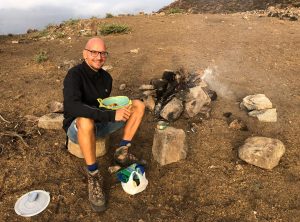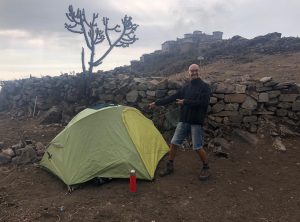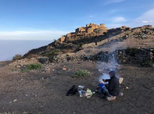 Keine Menschenseele, wir begannen unser Frühstück vorzubereiten, und unsere Mahlzeiten für die geplante Wanderung zu präparieren. Noch bevor wir den ersten Bissen im Mund hatten, tauchten zwei ältere Herren auf, die ihren Esel suchten. Die zwei waren sehr interessiert und wir unterhielten uns etwas. Einer der beiden verabschiedete sich, der andere setzte sich zu uns und beobachtete ganz genau unser Tun. In diese Gegend verlaufen sich wohl sehr sehr selten Touristen aus Europa und der 74 jährige Herr fand uns offensichtlich spannend. Wir fühlten uns unter Beobachtung etwas unwohl, schließlich wollten wir noch in Ruhe unsere Sachen packen uns umziehen und starten.