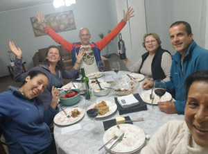 Direkt am ersten Abend hatte uns Ana zum Abendessen eingeladen, ihre Nachbarin Dorita flog einen Tag später nach Barcelona und wollte uns auch noch wieder sehen. Mit großer Freude und sehr herzlich wurden wir begrüßt. Wir bereiteten zusammen das Abendessen zu und leerten beim Essen mehrere Flaschen Wein. Anas neuer Gast Joss, ein Frankokanadier war auch mit dabei. Er war mit seinem Motorrad von Quebec bis hierher gefahren und auch auf dem Weg nach Süden. Wir hatten alle zusammen einen lustigen Abend.