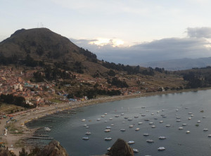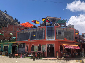 Wir fuhren ein paar Kilometer weiter nach Copacabana am Titicacasee, wo wir uns für eine Nacht eine AirBnB Unterkunft gemietet hatten. Wir wurden vom sehr freundlichen Besitzer empfangen und waren sehr zufrieden. Von der Dachterrasse aus hatten wir sogar Seeblick! Mittags erkundeten wir den schönen Ort, aßen unser erstes bolivianisches Menu und tranken am späten Nachmittag etwas in einer der Bars am Strand des Sees. Zum Sonnenuntergang stiegen wir den von der Seeseite her sehr steilen Hausberg von Copacabana rauf und genossen den Ausblick, bevor wir uns zurück zur Unterkunft machten.