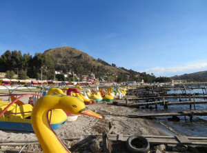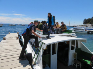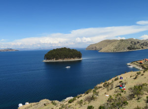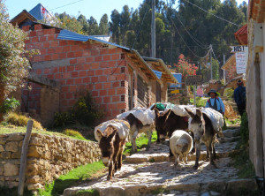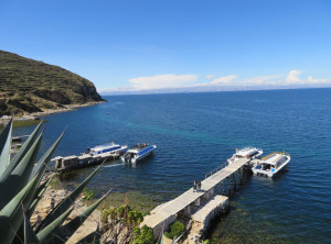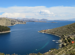 Am nächsten Vormittag kauften wir auf dem lokalen Markt Vorräte für die nächsten Tage ein. Für den Nachmittag hatten wir eine Bootsfahrt zur Isla del Sol gebucht, der größten Insel im Titicacasee. Nach ca. 2 Stunden auf dem Wasser kamen wir dort an und hatten 90 Minuten Zeit, dem Südteil der Insel zu erkunden. Wir gingen über einen Berg zu dem Hauptort der Insel, wo wir wieder eingesammelt werden sollten. Tief unter uns schimmerte der See in der Sonne und weit entfernt am anderen Ufer sahen wir eine schneebedeckte Bergkette. Autos gibt es hier nicht und alles wirkte sehr beschaulich.