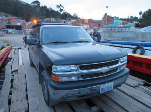 Zurück am Festland fuhren wir noch los Richtung La Paz. Dabei mussten wir den Titicacasee noch mit einer Fähre überqueren. Wir erreichten den Ableger beim letzten Tageslicht und waren sehr erstaunt. Die Fähren waren kleine Holzkähne, auf die 2 bis 3 Autos oder ein großer Bus passten. So etwas hatten wir auch noch nicht gesehen, aber der Transport ans andere Ufer funktionierte einwandfrei und wir fuhren im Dunkeln weiter Richtung La Paz.
