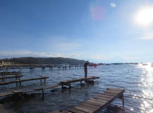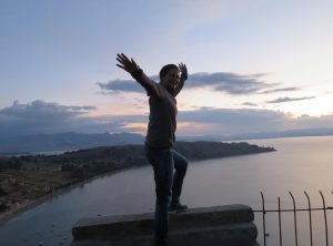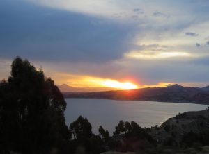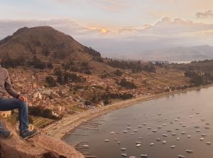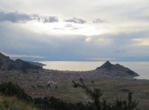 Wir fuhren ein paar Kilometer weiter nach Copacabana am Titicacasee, wo wir uns für eine Nacht eine AirBnB Unterkunft gemietet hatten. Wir wurden vom sehr freundlichen Besitzer empfangen und waren sehr zufrieden. Von der Dachterrasse aus hatten wir sogar Seeblick! Mittags erkundeten wir den schönen Ort, aßen unser erstes bolivianisches Menu und tranken am späten Nachmittag etwas in einer der Bars am Strand des Sees. Zum Sonnenuntergang stiegen wir den von der Seeseite her sehr steilen Hausberg von Copacabana rauf und genossen den Ausblick, bevor wir uns zurück zur Unterkunft machten.