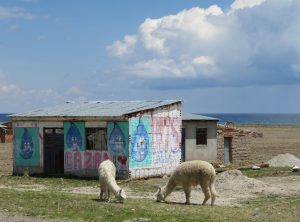 Heute wollten wir zum ersten Mal mit Jeffrey eine Grenze überqueren. Es ging nach Bolivien. Entsprechend aufgeregt waren wir, als wir morgens in Puno starteten. Hatten wir wirklich alle erforderlichen Dokumente? Auf dem Weg tankten wir nochmals voll und füllten unseren Reserverkanister. Angeblich soll es in Bolivien manchmal nicht so leicht sein, an Benzin zu kommen. Im letzten Ort vor der Grenze tauschten wir unser übrig gebliebenes peruanisches Geld in Bolivianos um.