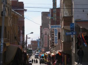 Vor der bolivianischen Passkontrolle fuhren wir an den Straßenrand, da wir ja hier die Nummernschilder wechseln mussten, da Jeffrey ab hier mit neuen Kennzeichen auf Nikos Namen angemeldet ist. Dabei beobachteten uns zwei Männer, die Popcorn aßen. Als wir fertig waren, kam einer der Männer und fragte uns, warum wir die Kennzeichen gewechselt hatten. Ich sagte, ich hätte die Kopien für die Einreise gegen die Originale getauscht. Wir fuhren zur bolivianischen Grenzkontrolle und sahen, dass der Mann im Haus des bolivianischen Zolls verschwand. Wir ahnten nichts Gutes… Zuerst holten wir uns bei der Einreisekontrolle unsere Einreisestempel für Bolivien ab. Danach gingen wir mit leichtem Herzrasen zum Zoll. Der junge Beamte kontrollierte unsere Papiere und verschwand für ein paar Minuten. Als er zurückkam, fragte er uns, warum wir die Kennzeichen gewechselt hatten und zeigte uns auf seinem Handy die Ausreisepapiere der peruanischen Seite mit den alten Kennzeichen. Erwischt, Mist…Ich versuchte dem Beamten aus spanisch zu erklären, dass der Wagen ab jetzt auf uns zugelassen ist und wir daher den Tausch vorgenommen hatten. Das Problem war, dass er unsicher war, ob so etwas legal ist. Also zeigten wir ihm alle Dokumente, die wir hatten. Leider war auf der Vollmacht nirgendwo das Auto anhand der Kennzeichen oder Fahrgestellnummer zu identifizieren. Also riefen wir Luis, unseren Kontaktmann in Lima an und er redete ein paar Minuten mit dem Beamten. Dieser ließ nicht locker und er telefonierte, um sich zu vergewissern, ob er uns mit dem Auto ins Land lassen konnte. Dann ging plötzlich alles sehr schnell. Er stempelte das Einreisedokument für Jeffrey ab, entschuldigte sich für die fast 2 Stunden, die der Prozess gedauert hatte und sagte, dass er heute auch etwas dazu gelernt hatte. Anscheinend ist erlaubt, was wir getan hatten. Auch wir entschuldigten uns, dass wir ihn so lange aufgehalten haben und sahen zu, dass wir wegkamen. Wir hatten es geschafft, wir sind in Bolivien!