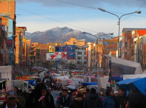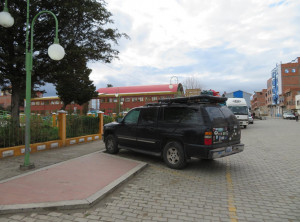 Wir verbrachten unsere zweite Nacht in Bolivien in unserem gemütlichen Auto, oder wie meine Mama sagt in unserem Schneckenhaus, etwa 50 Kilometer vor den Toren der Stadt La Paz. Jeffrey stand quasi mitten auf dem Marktplatz einer Kleinstadt und einige Dorfbewohner spähten am Morgen neugierig zu uns rüber. Als wir erzählten, dass wir aus Deutschland kommen und im Auto geschlafen haben waren die freundlichen Bolivianer begeistert und begutachteten interessiert das Innere unseres Autos.