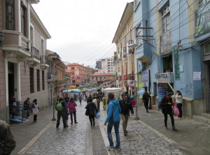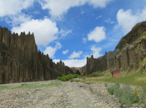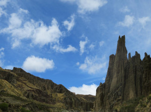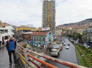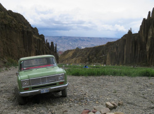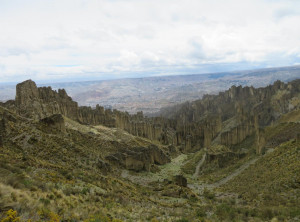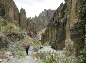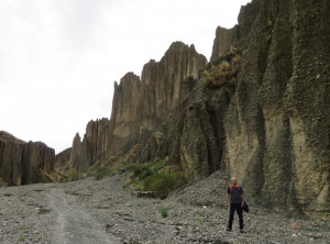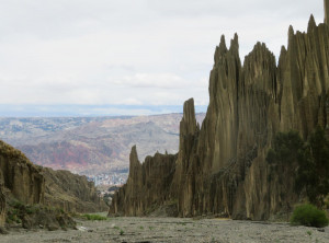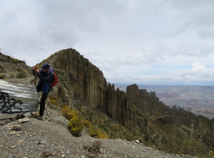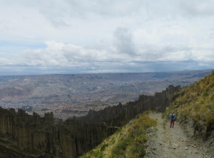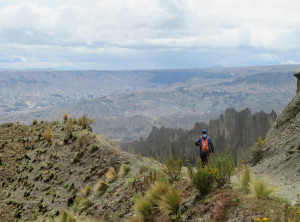 Für unseren zweiten Tag in La Paz hatten wir uns eine Wanderung auf der gegenüberliegenden Seite der Stadt rausgesucht. Wir mussten also einmal durch die Stadt durch. Die Straßen waren eng und voll, es ging steil hoch und runter und es waren unzählige Menschen unterwegs, Jeff mit uns beiden mitten drin. So vergingen zwei Stunden, ehe wir am Ausgangspunkt der Wanderung ankamen. Mit einem schönen Blick von oben auf die Stadt frühstückten wir, allerdings im Auto, da es anfing zu regnen. Pünktlich mit dem Start unserer Wanderung hörte der Regen auf und es wurde etwas freundlicher. In den nächsten 4 Stunden ging es zunächst 600 m aufwärts und dann durch Sandsteinberge in eine Schlucht bis zurück zum Auto. Dieser Ausflug hat sich gelohnt.
