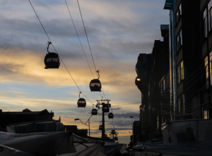 Nun ging es mit der Seilbahn in die City, am Morgen hatte es geregnet und unser Thermometer im Auto zeigte nur 1 Grad an. Es war also frisch. Trotz der Wetterlage genossen wir die Fahrt. Wir erkundeten die Stadt, tranken einen Café, besuchten eine Versicherung für Jeffrey und informierten uns in der Touristeninformation. Hier bekamen wir den Tip für eine Rundtour mit dem Seilbahnnetz inklusive Aussichtspunkt. Da das Wetter nicht besser wurde, besuchten wir aber zunächst mal das Coca Museum.