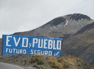 Wir hatten die Wanderung auf dem El Choro Trek so gelegt, dass wir am 20. Oktober unterwegs sind. An diesem Tag wurde in Bolivien ein neuer Präsident gewählt und im ganzen Land durften bis 18 Uhr keine Fahrzeuge fahren. Wandern ist also die beste Fortbewegung! Schon in den letzten Tagen ist uns aufgefallen, dass die Anhänger des Amtsinhabers Morales jeden Felsen und jede Wand in den Farben blau, schwarz, weiß und mit Parolen des Präsidenten bepinselt hatten. Andere Länder, andere Sitten…
