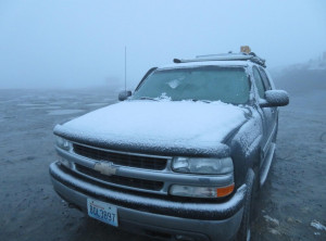 Unser Wecker klingelte früh, da wir am ersten Tag einige Kilometer zurücklegen mußten. Als wir die Autotür öffneten, staunten wir nicht schlecht. Draußen war es weiß und es schneite heftig. Wir hatten ja am Startpunkt auf fast 4.700 Metern Höhe übernachtet. Die Sicht betrug kaum 10 Meter, an eine Wanderung war bei diesen Wetterverhältnissen nicht zu denken. Außerdem ging es uns beiden nicht gut, wir hatten schon in der Nacht Anzeichen einer Höhenkrankheit mit Kopfweh. Also entschieden wir uns, direkt mit dem Auto nach Coroico zu fahren und dort die nächsen zwei Nächte zu bleiben.