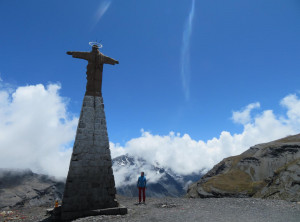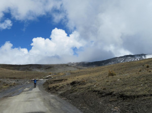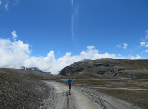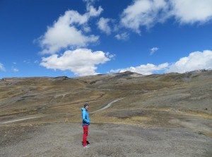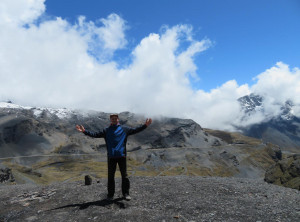 Auf dem Rückweg aus Coroico wider aufwährts kamen wir an dem vor zwei Tagen zugesschneiten Bergpass vorbei. Heute war das Wetter komplett anders und es offenbarte sich eine grandiose Berglandschaft. Auf dem Weg hoch zum Pass kamen uns zu hunderten Mountainbiker entgegen, denn die 3.500 Höhenmeter zwischen La Paz und Coroico sind auch als Death Road bekannt, da auf der alten Straße jedes Jahr dutzende von Autos im Abgrund verschwanden. Heute ist die alte Piste den Mountainbikern vorbehalten und eine der beliebtesten Ausflüge aus La Paz. Oben auf dem Pass stiegen wir aus dem Auto und spazierten diesmal ohne Schnee und bei Sonnenschein etwas umher, bevor unsere Reise weiterging.