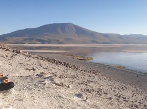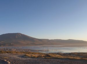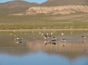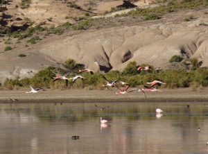 Am nächsten Morgen staunten wir nicht schlecht. Der See war voller Vögel, darunter hunderte Flamingos. Die Berge spiegelten sich auf der Wasseroberfläche, einfach schön und weit und breit kein Mensch. Wir spazierten etwas umher und machten viele Flamingo Fotos. Da es noch früh und etwas frisch war, fuhren wir erstmal ein Weilchen um machten später einen Stop und frühstückten gemütlich in der Sonne.