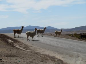 Etwa 45 Minuten später erreichten wir die bolivianische Grenze. Wir verschenken noch unsere letzten Cocablätter und stopften uns mit Obst voll. Frische Produkte darf man nicht nach Chile einfuhren und die Kontrollen sollen sehr genau sein. In einem staubigen Tal durch das der Wind pfiff wurden zuerst unsere Pässe und dann Jeffreys Dokumente geprüft, keine fünf Minuten später befanden wir uns im Niemandsland zwischen Chile und Bolivien – nun trennten uns noch ca. 5 Kilometer Schotterpiste von der chilenischen Grenze. Etwas wehmütig waren wir schon. Danke Bolivien, du hast uns mit deinen freundlichen Menschen der Gastfreundschaft und mit deiner einmaligen Natur mehr als verzaubert!