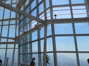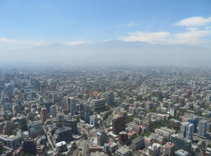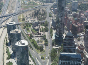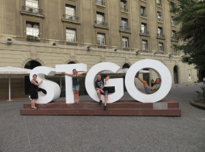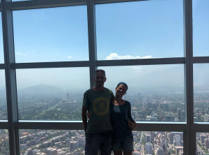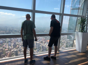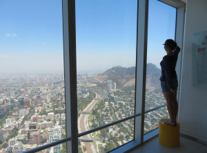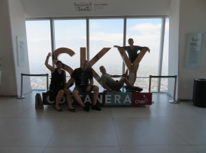 Am nächsten Tag waren wir etwas pünktlicher unterwegs, diesmal mit der U-Bahn. Unser Ziel war das höchste Gebäude der Stadt, der Torre Gran Costanera, der mit seinen 300 Metern deutlich aus der Masse der ohnehin schon hohen Häuser heraussticht. Wir hatten Glück, keine Schlange wir konnten direkt zum Fahrstuhl durchgehen und los ging es. Kerstin hatte kaum Zeit, Angst zu haben und schon waren wir oben. Sehr sehr tapfer ließ Kerstin auch unser Gruppenbild über sich ergehen. Wir alle bestaunten die Stadt von oben, unglaublich wie hoch wir waren.