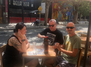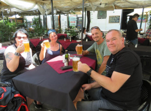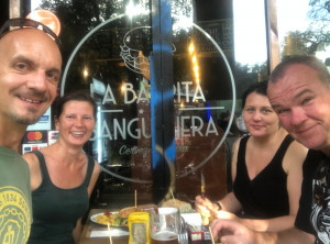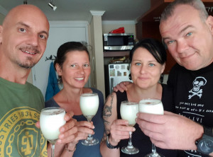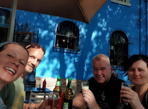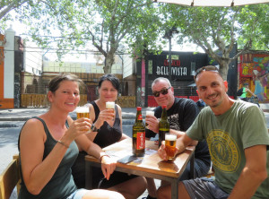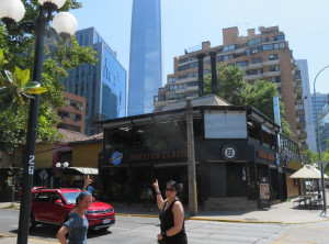 Obwohl wir erst nach sieben ins Bett gegangen sind, verabredeten wir uns gegen 12 Uhr zum Frühstück in unserer Küche. Wir waren erstaunlich ausgeruht und genossen unsere Pfannkuchen. Zum Nachtisch genehmigten wir uns eine Pisco Sour nach peruanischem Rezept. Die Pisco Flasche hatten Markus und ich bereits in Lima gekauft und über 5000 km rumgefahren. Mit Eiweißschaum, Limetten, Zimt und Zucker war der Drink komplett. Gestärkt machten wir uns auf den Weg zum Park, San Cristobal der mit einem Aussichtspunkt, auf den man mit einer Zahnradbahn fahren kann lockt. Dieser Ausflug wurde uns in der Touristeninformation empfohlen, sollte also sicher sein. Wir spazierten etwa 45 min durch die Stadt und standen am Eingang des Parks – der aufgrund von Unruhen in der Stadt die ganze Woche geschlossen blieb. Wir entschlossen uns alternativ Spontan für ein kühles Getränk und quatschten erstmal weiter, schließlich hatten wir uns ja mehr als ein Jahr nicht gesehen, da gibt es viel zu berichten.