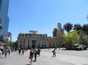 In unsere Unterkunft, die im 21. Stock liegt, konnten wir um 14 Uhr einchecken. Somit blieben uns also noch ein paar Stunden, um die Stadt zu erkunden. Wir spazierten zum Plaza de Armas, durch ein großes Shoppingcenter und schließlich über den zentralen Markt. Das Wetter war schön und auf den Straßen waren einiges los. Auch die Unruhen der vergangenen Wochen zeigten ihre Spuren. Die Gebäude, in denen Banken und Supermärkte sind, wurden mit Spanplatten und Gittern verbarrikadiert, viele Geschäfte blieben geschlossen oder öffneten nur eine kleine Tür, die im Notfall schnell wieder geschlossen werden kann. Werbeplakate, Häuserfronten, Mülleimer, Bushaltestellen und und und waren zerstört, bemalt oder abgebrannt. Trotzdem fühlten wir uns sicher, waren aber auf der Hut. Um 14 Uhr bezogen wir unser Apartment – Yuhuu! Was für ein Luxus. Nun hieß es die Einkäufe einräumen, Bier kalt stellen, duschen und Wäsche waschen. Wir waren erstmal beschäftigt und genossen es, in einer gut sortierten Wohnung zu sein.