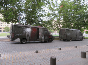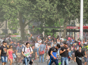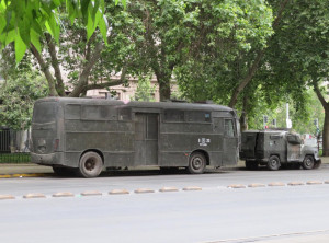 Später liefen wir in Richtung des Plaza Italia und sahen uns aus sicherer Entfernung das Treiben der aufgebrachten Demonstranten an. Immer mehr Menschen zogen größtenteils friedlich zur hier täglich stattfindenden Demonstration. Es war ein Sanitätsdienst aufgebaut und die Polizei zeigte ebenfalls Präsenz. Als wir Wasserwerfer sahen, entschieden wir uns für dem Rückzug. Wir fanden ein nettes Lokal, in dem wir zu Abend aßen und machten uns bald auf den Weg Richtung Unterkunft. Es herrschte ein angespannte Stimmung, überall Polizei und Demonstranten, die Zugänge zu öffentlichen Gebäuden waren bewacht und zum Teil gesperrt, Banken und Geschäfte geschlossen.