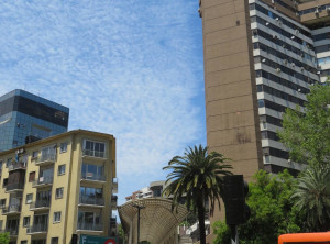 Informationen und Tips erhielt ich von Mauricio aus erster Hand, er lebt selber im Zentrum der Stadt. Er riet uns, möglichst am Vormittag in die City zu fahren, da ist es meistens ruhig. So machten wir das dann auch, es war Sonntag und die Straßen waren erstaunlich leer, alles war ruhig. Ohne Probleme erreichten wir den Parkplatz unserer Unterkunft. Wir standen sicher zwischen den Hochhäusern und machten es uns erleichtert zunächst mal mit unserem Müsli auf der Mauer vor unserem Auto gemütlich.