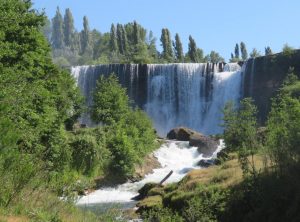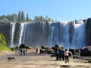 Nach unserer Nacht auf einem Rastplatz der Panamericana setzten wir früh morgens unsere Reise fort. Besonders gut geschlafen hatten wir nicht und unser Frühstück wollten wir an einem schöneren Ort genießen. Nach einer Stunde erreichten wir einen Wasserfall und suchten einen schönen Picknickplatz, alle Frühstücksutensilien mit samt Gaskocher schleppten wir mit. Wir fanden nach unzähligen Treppenstufen ein nettes Plätzchen mit einer Bank und einem grandiosen Blick auf den hufeisenförmigen Wasserfall. Nach dem ersten Windzug, der eine ordentliche Menge Wassertropfen im unsere Richtung beförderte, flüchteten wir allerdings mit Sack und Pack an eine etwas geschütztere Stelle.