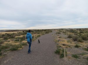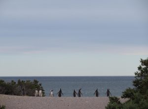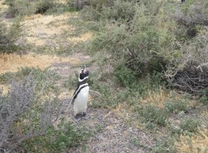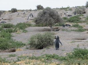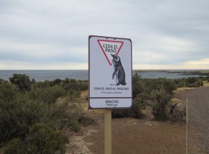 Nachdem wir die Valdés Halbinsel verließen, fuhren wir in Richtung Punta Tombo. Dort lebt eine sehr große Kolonie der Magellan-Pinguine. Es ist die größte Population außerhalb der Antarktis. Jedes Jahr sollen hier bis zu einer Millionen Pinguine brüten. Auf dem Weg passierten in Trelew eine riesige Statue eines Dinosauriers. Hier wurden vor einigen Jahren die Fosilien des größten bekannten Urzeittieres gefunden und dieses dann in Echtgröße nachgebildet. Mit dem Einbruch der Dunkelheit erreichten wir den Eingang des Nationalparks Punta Tombo und legten uns schlafen.