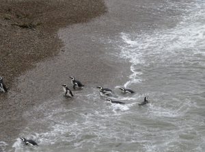Am Ende des ca. 1,5 Kilometer langen Weges war ein Aussichtspunkt, an dem wir beobachten konnten, wie die Pinguine an einem Strand ins Wasser gingen, um auf Fischjagd zu gehen. Auf einem Beutezug schwimmen sie teilweise bis zu 600 Kilometer weit in den Altantik hinein. Ganz schön zäh, die kleinen Biester…