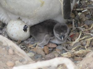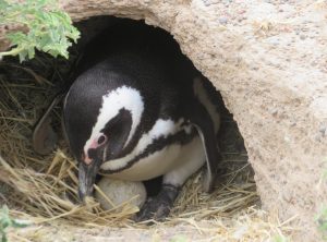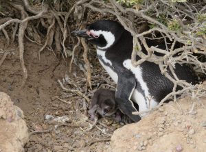 Die Tiere waren überhaupt nicht scheu und liefen wenige Meter an uns vorbei. Überall standen und lagen sie herum, viele in ihren Bruthöhlen. Wir waren genau zu der Zeit da, in der die Küken aus den Eier schlüpfen. In vielen Nestern sahen wir bereits die Kleinen, ein Elternteil wärmte sie und lag auf ihnen. Mit lautem Geschnatter verteidigten sie ihre Bruthöhlen gegen jeglichen Eindringling. Teilweise waren auch noch Eier zu sehen, bei einem konnten wir zuschauen, wie gerade ein Küken schlüpfte.