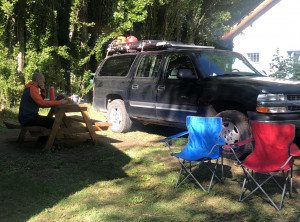Geweckt wurden wir schon um kurz nach sieben von zwei Argentiniern, die sich mit ihrem Auto unweit von unserem Schlafplatz im Sand festgefahren hatten. Die zwei schienen nicht ganz nüchtern und hilflos. Für Jeffrey war es kein Problem, den beiden aus der Misere zu helfen. Erleichtert fuhren die zwei davon. Wir beide joggten noch eine Runde und machten uns dann auf die Suche nach einer Dusche.