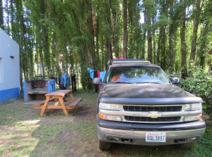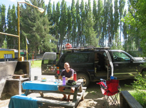 Wir fragten an einem Campingplatz und durften für 1,50 € für uns zwei die warmen Duschen und die Picknickplätze nutzen. Wir planten am nächsten Tag wieder nach Chile zu fahren und da man über die die Grenze keine frischen Lebensmittel transportieren darf, nutzten wir die windstille Frühstücksgelegenheit auch zum Kochen. Mit nun jeder Menge zubereitetem Essen im Kühlschrank setzten wir unsere Reise fort. Noch einen Stop im Waschsalon verließen wir El Calafate in Richtung der 200 km entfernten chilenischen Grenze.